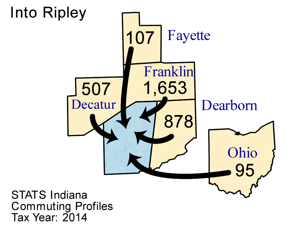 | County Name | Commute INTO Ripley County | % of Ripley County Workforce |