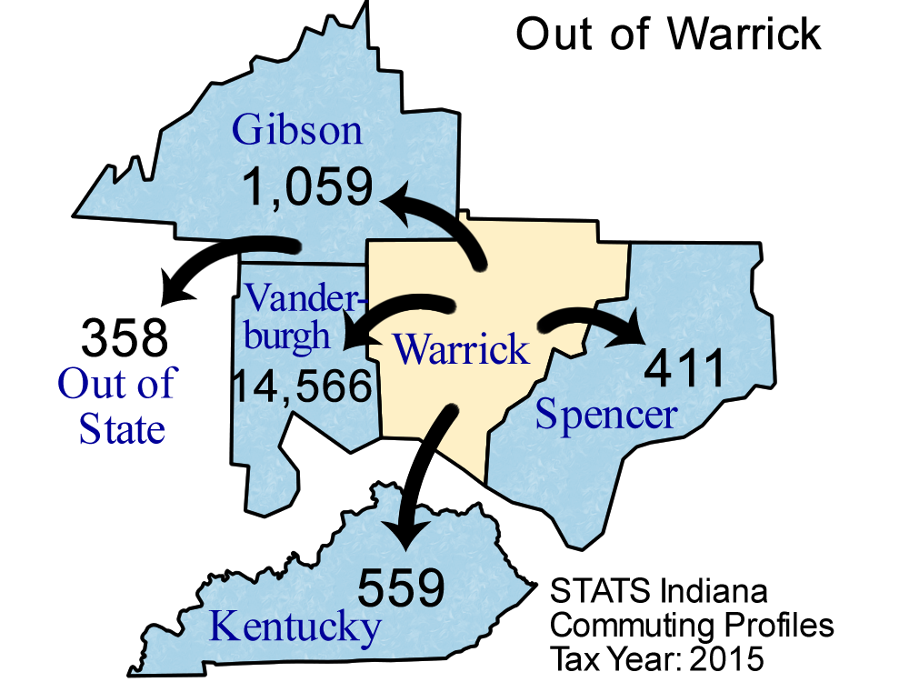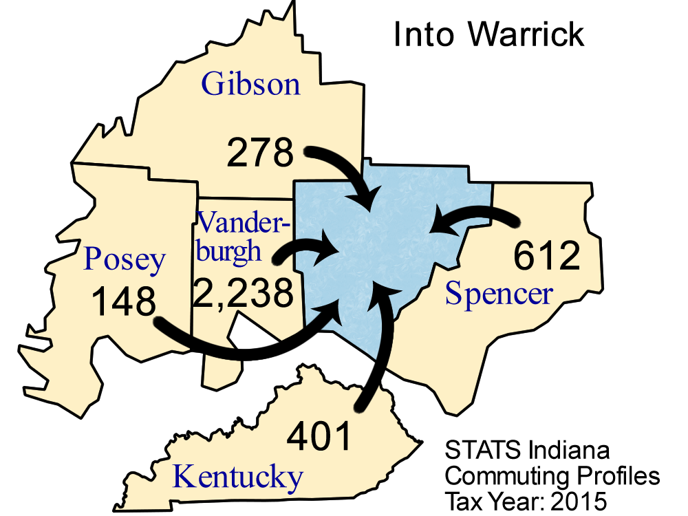 | County Name | Commute INTO Warrick County | % of Warrick County Workforce |